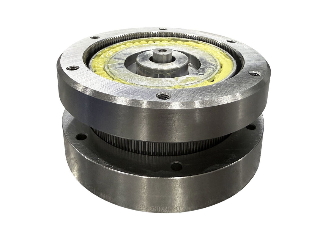 FDSシリーズのコンビネーションタイプは、パンケーキコンポーネントタイプと同じ4つのコアコンポーネントを共有しますが、コンビネーションタイプには追加の前後シーリングフランジとサポートベアリングが含まれています。FDSシリーズは、カップタイプFSGシリーズと同じ動作原理で動作します。パンケーキフレクススプラインの形状は、カップフレクススプラインのベースの断面と同一であり、ウェーブジェネレーターベアリングは2列に配置され、円形スプラインとフレクススプラインの歯幅が増加して、より高いトルク容量に対応します。さらに、パンケーキタイプは、出力軸への接続のためにフレクススプラインと同じ歯数を持つ追加の円形スプラインを備えています。